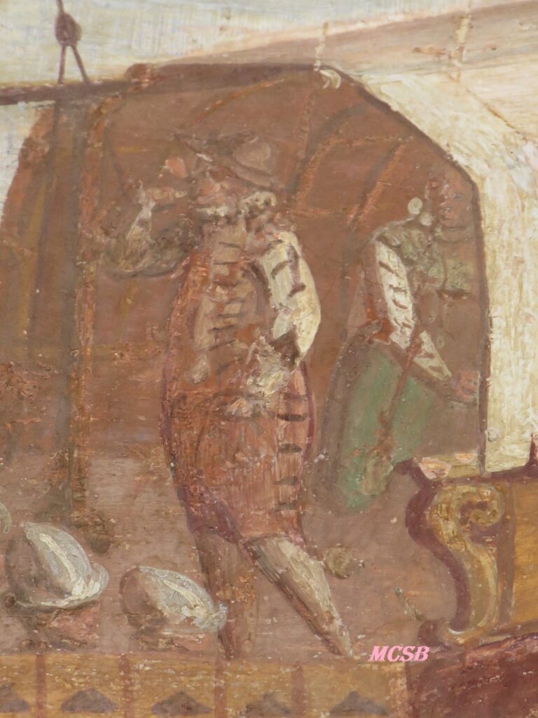 Empezaré con la indumentaria de los marineros de la Gran Armada y, para ello, nos vamos a fijar en el cuadro de Vicente Carducho, Regreso de San Juan de mata con los esclavos liberados de Túnez (1634-35), que se encuentra en el Museo del Prado, y en el Niño Jesús de la Misa de San Pedro Pascual, de Jacinto Jerónimo Espinosa (1660), Museo de Bellas Artes de Valencia.
